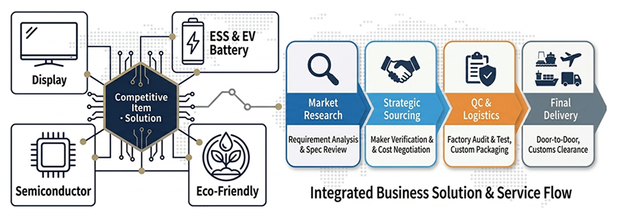 글로벌 네트워크 기반의 전략적 소싱으로 파트너사의 원가 경쟁력과 생산 안정성을 보장하는 토탈 솔루션