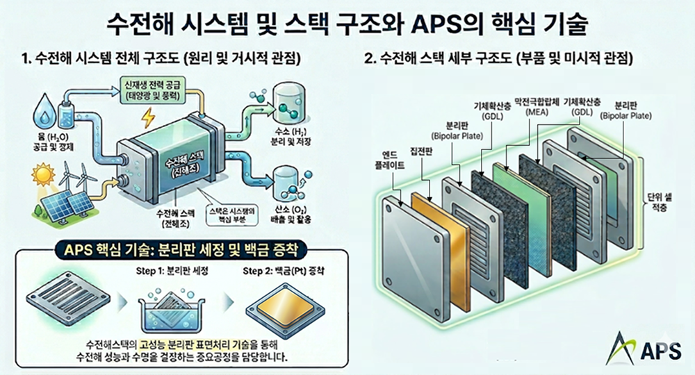 엄격한 품질과 신뢰성이 요구되는 수전해 분리판 표면처리 분야에서, APS는 다년간 축적해 온 독보적인 정밀 세정 및 진공 증착(PVD) 노하우를 자랑합니다.